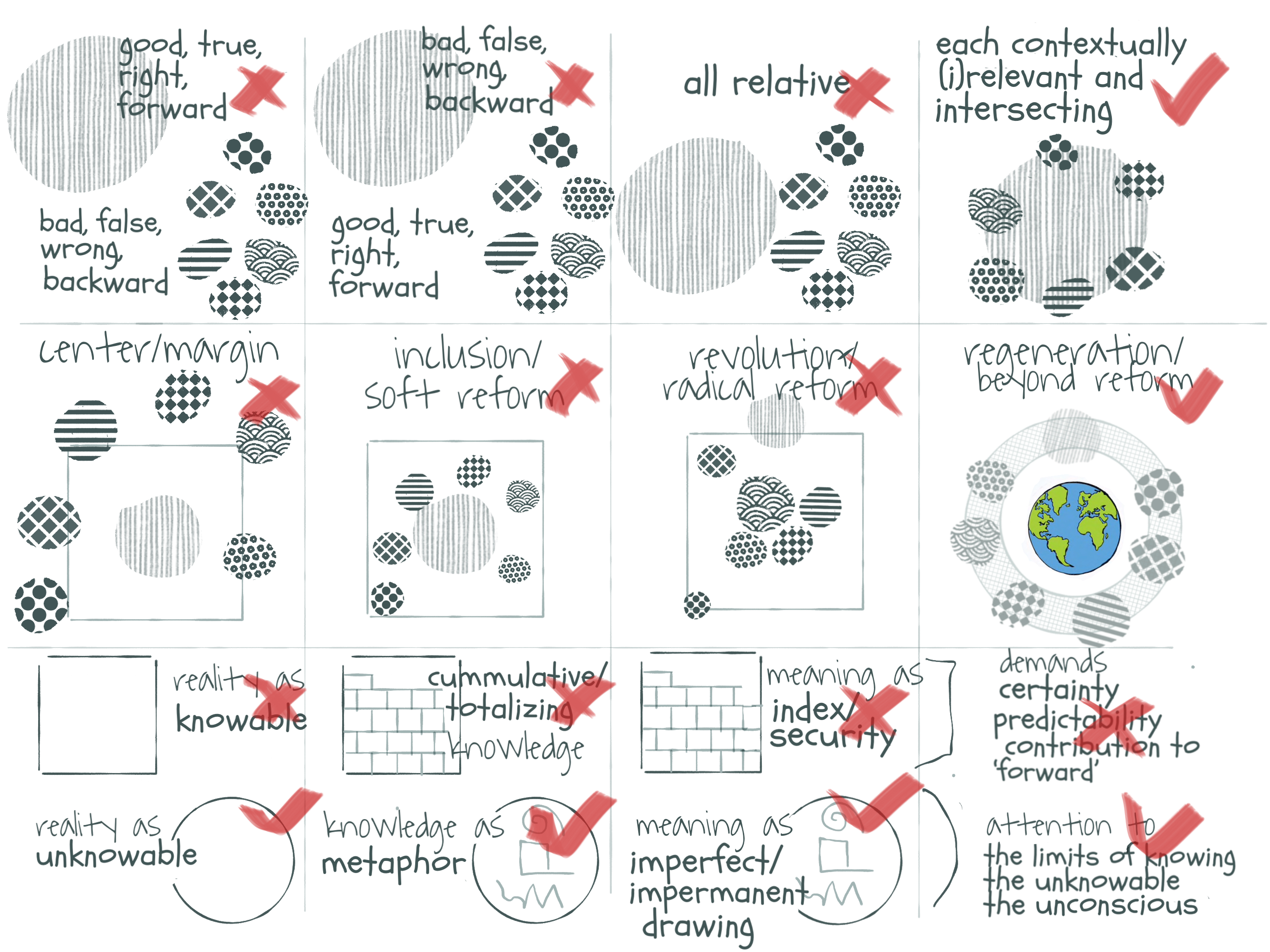 - Knowledge relations CSC: maps of relationships between dominant and marginalized knowledge systems, presenting two possibilities for our relationship with knowledge and meaning.